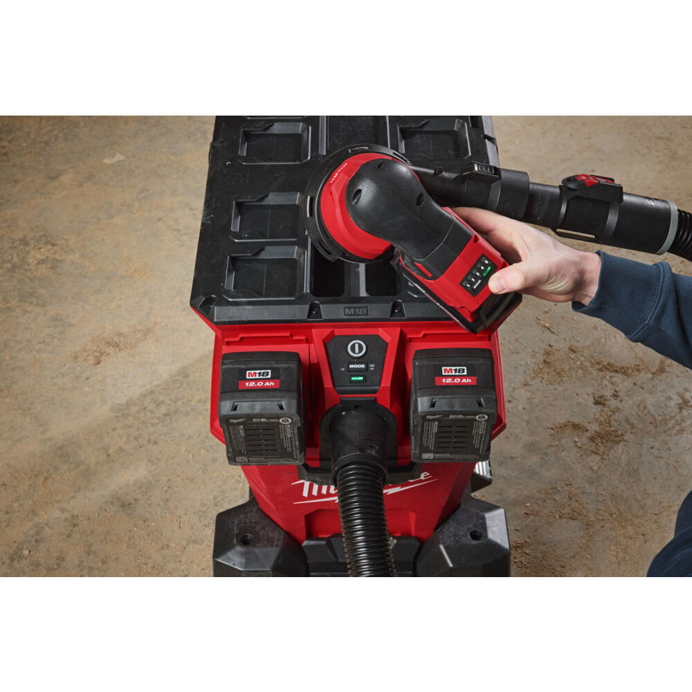 MILWAUKEE® M18 FUEL™ 23 lítra L-flokks ryksugan er öflug, endingargóð og fjölhæf lausn fyrir hreinsun á vinnusvæðum. Hún er hönnuð fyrir bæði vot- og þurrefni og skilar framúrskarandi afköstum í krefjandi aðstæðum. Með NEXUS™ tvírafhlöðukerfi nýtir ryksugan tvær M18™ rafhlöður samtímis fyrir aukið afl og lengri keyrslutíma. VACLINK™ þráðlaus rykstýring gerir kleift að ræsa ryksuguna sjálfkrafa með samhæfðum verkfærum eða meðfylgjandi fjarstýringu. PACKOUT™-samhæft lok gerir auðvelt að stafla og flytja búnað á vinnusvæði. flug soggeta, HEPA H13 sía og traust undirvagn með læsanlegum hjólum tryggja skilvirka, örugga og þægilega notkun – hvort sem unnið er við smíði, niðurrif eða almenna verkstæðisvinnu.
