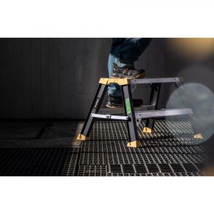 Öflug og stöðug áltrappa tvöföld frá Hultafors W.steps, úr endurunnu áli með lægra kolefnisspori. Stór vinnupallur (300 × 620 mm) með tvíátta hálkuvörn, djúp þrep og breiður undirstöðugrunnur tryggja hámarks öryggi og endingu í daglegri notkun.
