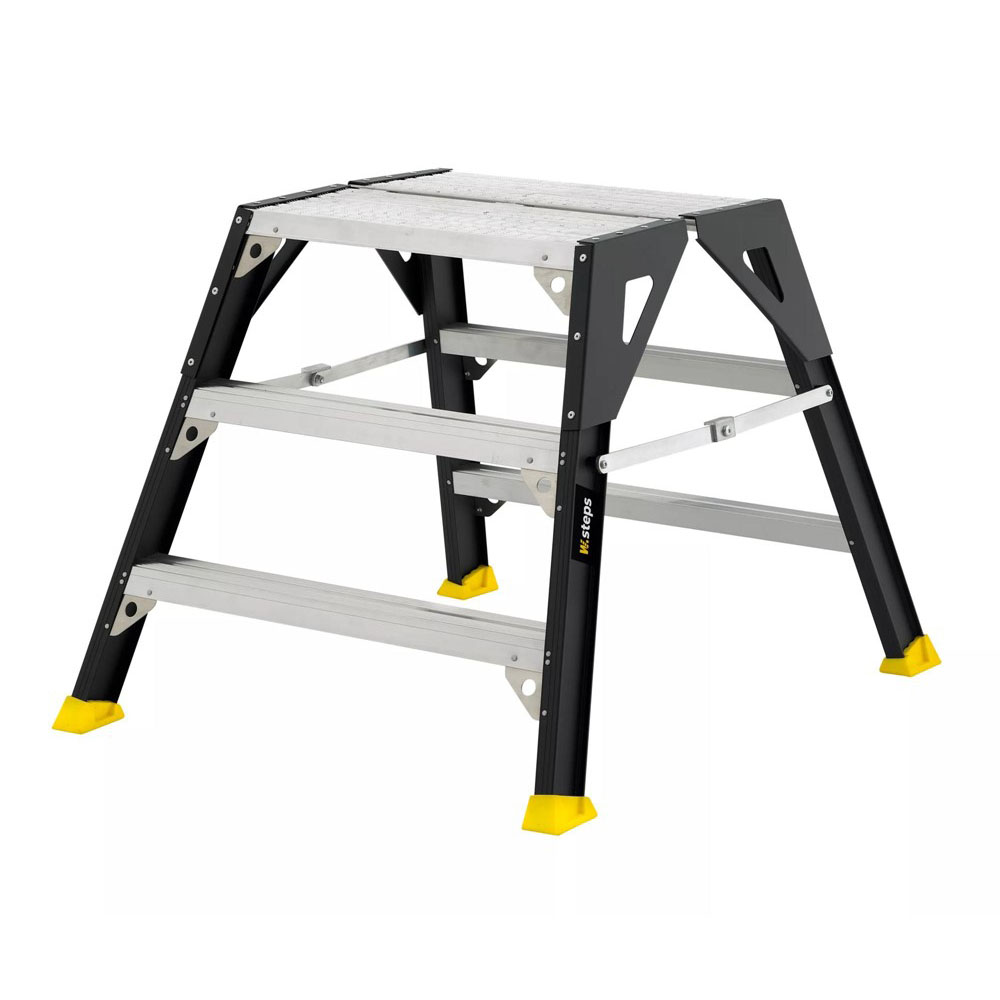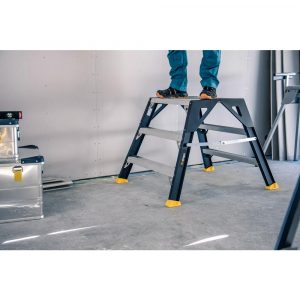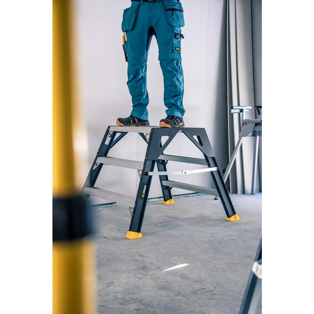 Öflug og stöðug áltrappa tvöföld frá Hultafors W.steps, með stórum vinnupalli (500 × 620 mm) og tvíátta hálkuvörn. Djúp þrep, útskeifir fætur og sterk hönnun tryggja öryggi og þægindi í daglegri notkun.