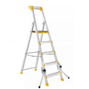 Stoðfætur úr áli fyrir Hultafors W.steps áltröppur 55P og Hultafors W.steps áltröppur 44p. Stoðfæturnir víkka undirstöðu trappanna og draga úr hættu á hliðarfalli. Sérstaklega hentugir fyrir faglega notkun þar sem aukinn stöðugleiki og öryggi skipta máli. Auðveld uppsetning.