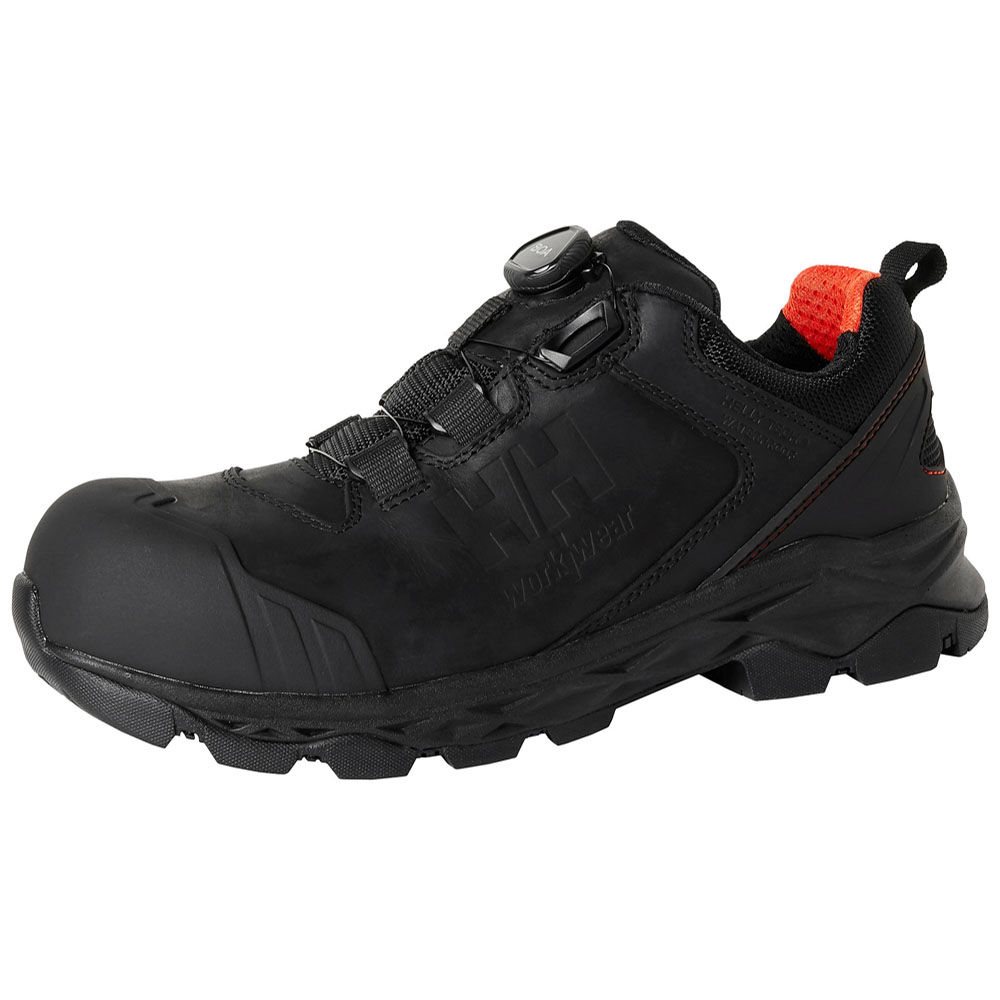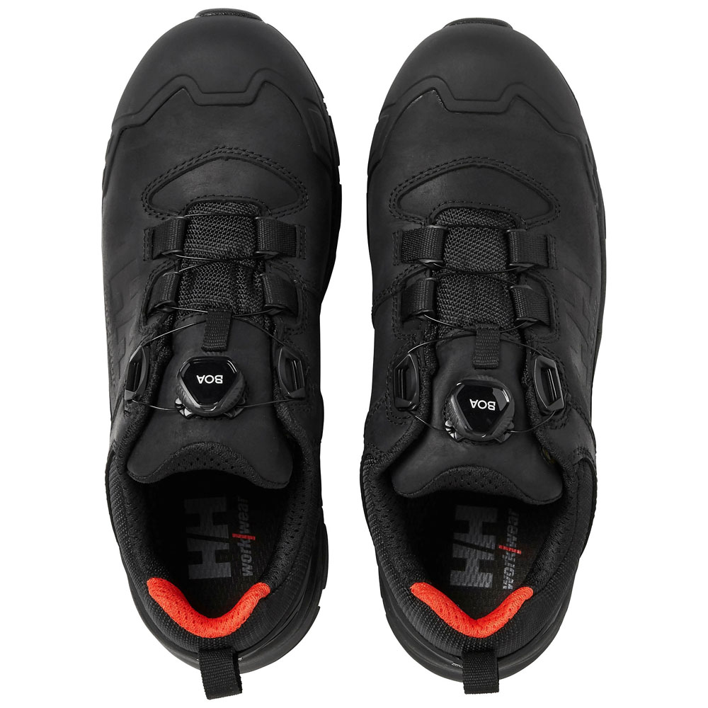 Gæða lágir öryggisskór úr Oxford línunni frá HH Workwear. Skórnir sameina endingargæði, þægindi og nútímalega hönnun. Skórnir eru með BOA® system kerfi og aðlagast því afskaplega vel að fætinum, ásamt því að bæða auðvelda og flýta fyrir notendanum að smeygja sér í og úr þeim. Skórnir eru með vatnsheldna HellyTech himnu, sem veitir bæði vatnsvernd og öndun. Þeir passa einnig vel fyrir þá sem eru með breiðari fót. Sólinn gefur einnig mýkt, sem dregur úr þreytu og veitir hámarks vörn gegn vinnustaðahættu. Samsett málmlaus tá og gataþolin sniðplata verja fæturna, á meðan vatnshelt nubuck leður og Helly Tech® vatnshelda himnan halda þér þurrum allan daginn.