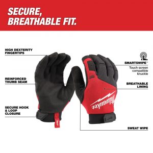 MILWAUKEE® Performance vinnuhanskarnir eru hannaðir fyrir daglega notkun þar sem þægindi, fingrafimi og gott grip skipta mestu máli. Þeir henta vel í almenn verk, uppsetningar, viðhald og léttari iðnaðarvinnu. Loftgóð tri-cot fóðring tryggir mikla öndun og þægindi allan daginn, á meðan Hook & Loop lokun (frönsk rennilásfesting) veitir örugga og stillanlega mátun. SMARTSWIPE™ snertivirkni á fingrum gerir þér kleift að nota snertiskjái án þess að taka hanskana af, og terry cloth þumall með rakadrægu efni er hentugur til að þurrka svita á t.d. enni við vinnu. Hanskanir eru CE-vottaðir samkvæmt EN ISO 21420 og EN388:2016 (2121A) og veita áreiðanlega vernd við daglega notkun. Hanskana eigum við einnig til í stærðum 10/XL og 11/2XL.